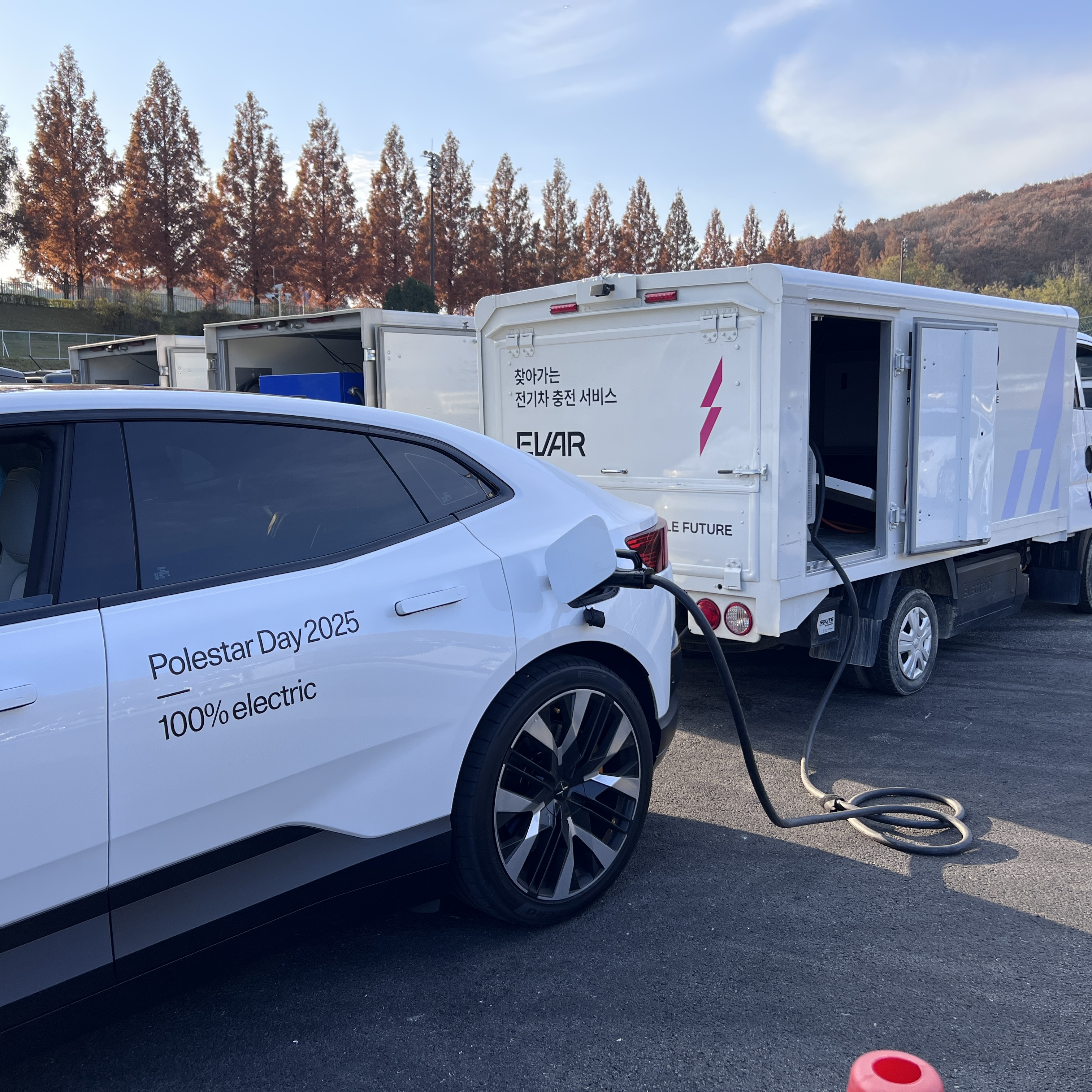 EVAR๊ฐ Polestar Day 2025 ํ์ฌ์ ์ด๋ํ ์ถฉ์ ๊ธฐ MooeV๋ฅผ ๋ฐฐ์นํด ์์ ์ ์ธ ์ถฉ์ ์ ์ง์ํ์ต๋๋ค!